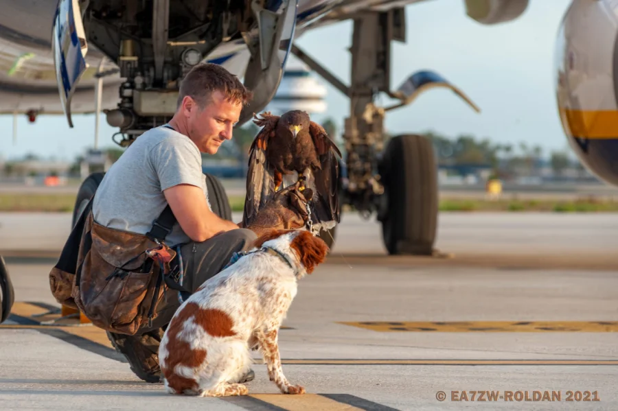 Los cetreros entrenados y sus aves rapaces desempeñan un papel crucial en la disuasión y dispersión de especies de aves que representan un peligro potencial para la seguridad de las operaciones aéreas. A través de técnicas de vuelo controlado y presencia visual, las aves de presa pueden disuadir a las aves silvestres de congregarse en zonas críticas del aeropuerto, reduciendo así el riesgo de colisiones con aeronaves.